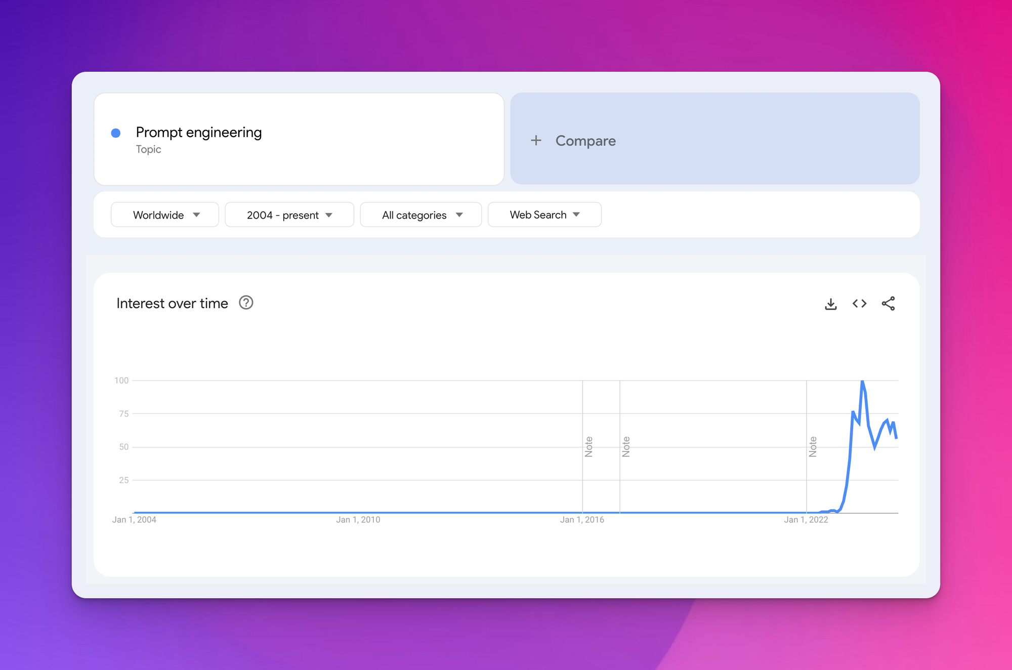 We have already seen new jobs spring to life in the advent of ChatGPT. For example, "Prompt Engineering" only became a topic at the beginning of 2023 as seen below in the Google Trends report.