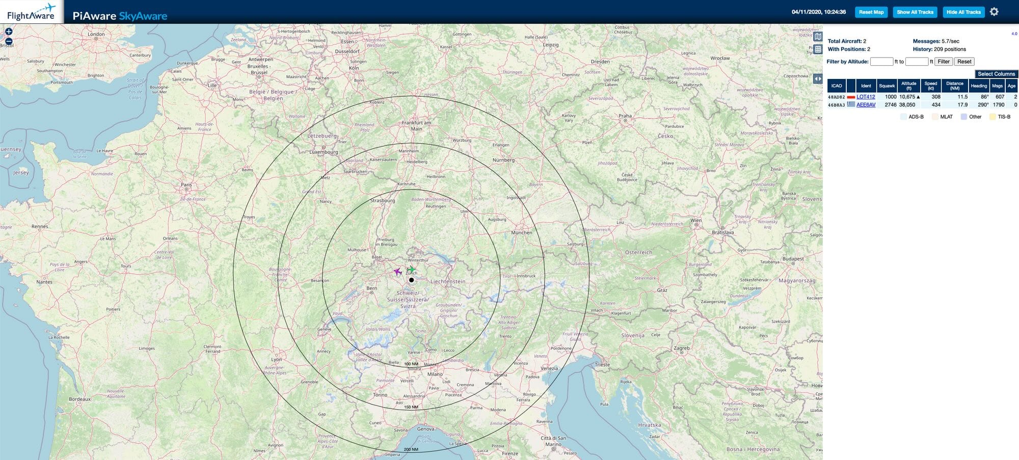 By creating a Raspberry Pi FlightAware ground station, we collect the ADS-B metrics and send them to FlightAware for visualization. The Raspberry Pi runs the FlightAware software, which provides the interfaces to a USB TV tuner responsible for recording the ADS-B signals.