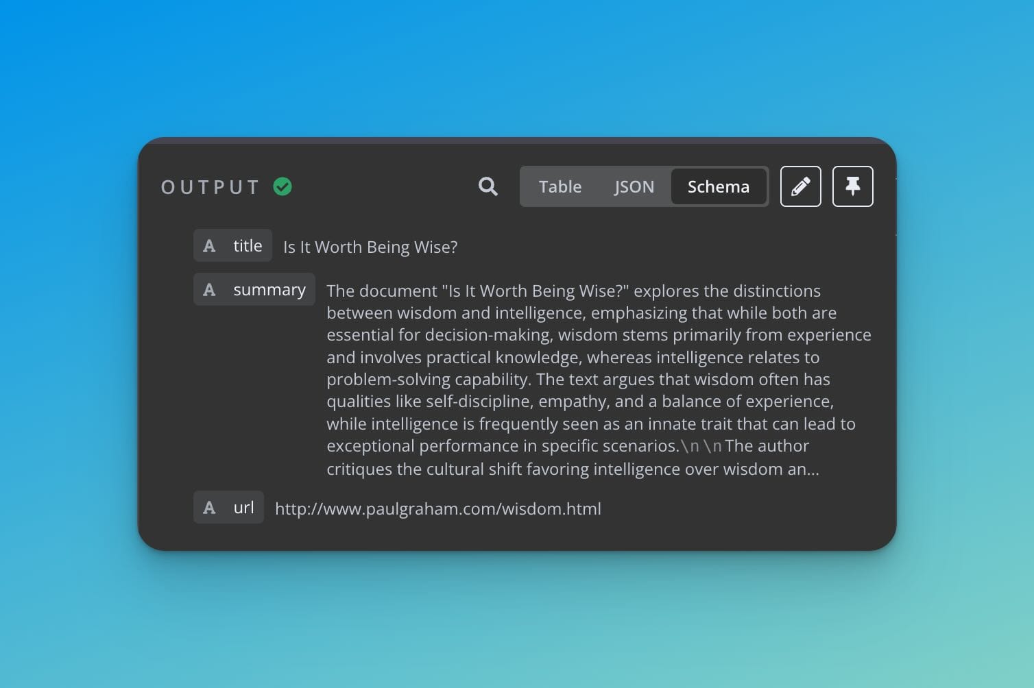 Here's an example I pulled from the template store demonstrating a workflow which summarizes blog posts with ChatGPT. In the example, it scapes Paul Gram's blog and summarizes the last blog post.