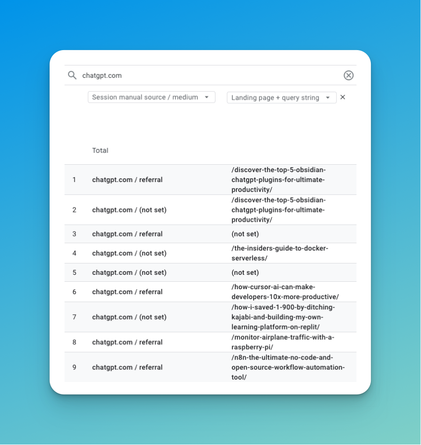 Below you can see my Google Analytics referrals to brianchristner.io from ChatGPT.