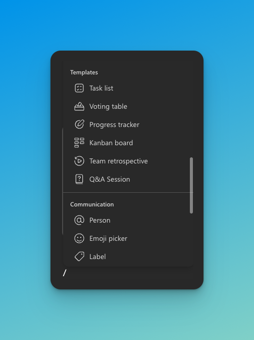 It is built on the concept of "components" that can be embedded into different Microsoft apps like Teams, Outlook, Word, and OneNote. These components are live, meaning any changes are automatically updated across all instances in real time, regardless of the application used allowing collaborators to see changes as they happen.