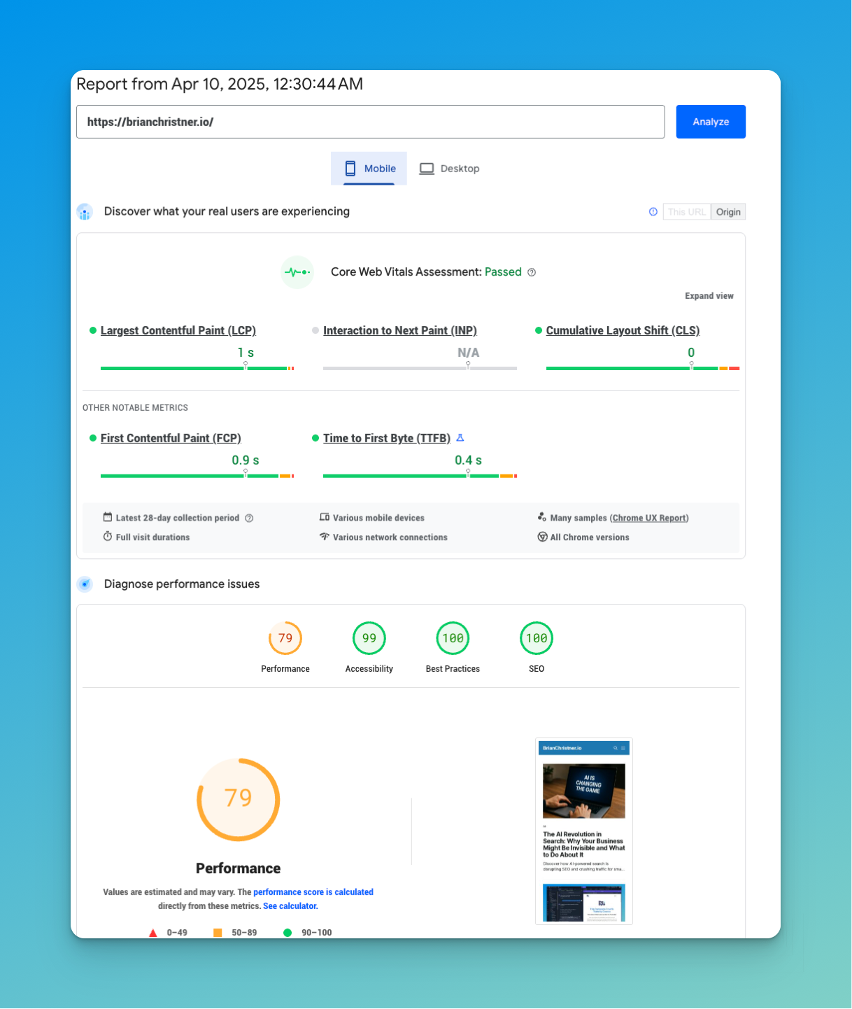 - You get both mobile and desktop performance snapshots.